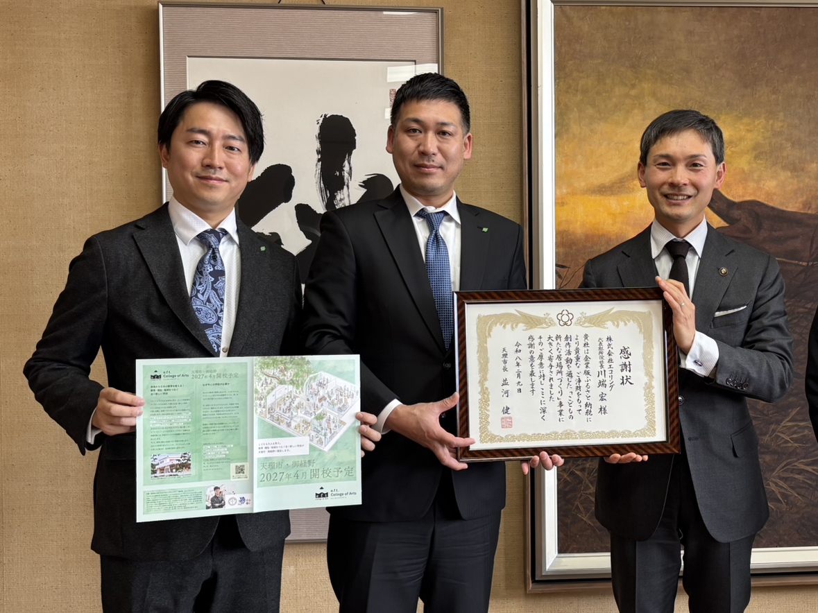 またこれを受け、2026年2月9日 天理市役所にて、市長 並河 様より感謝状を拝受いたしました。