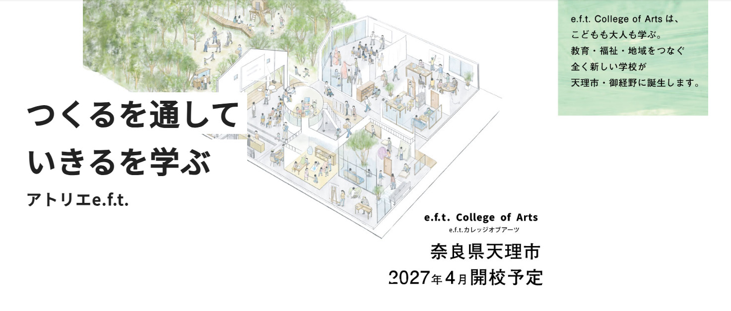 本寄付は、天理市と「一般社団法人みちをつくる/アトリエ e.f.t.(代表 吉田田 たかし 様)」が推進する「こどもの新たな居場所づくり計画」の取り組みに賛同し、企業として地域社会の持続的発展に貢献することを目的としたものであり、2027年4月 奈良県天理市 御経野児童館の施設を改修・利活用した新たな「居場所(e.f.t. College of Arts)」を生み出す計画に充てられます。