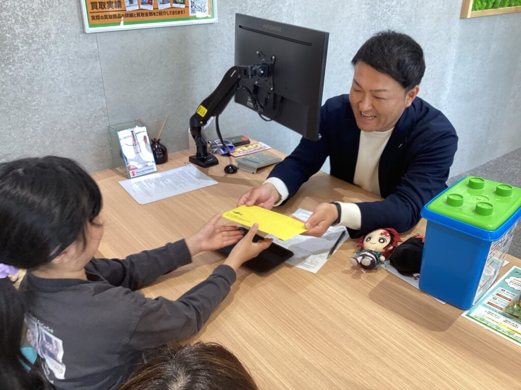 お子さんたちが自宅から持ってきた不要なおもちゃやゲーム機などを、実際に査定・売却する“お客様”体験をしました。壊れたコントローラーも買い取っていることに驚きの声も上がり、「モノを捨てない選択肢がある」という実感を得るきっかけになったようです。